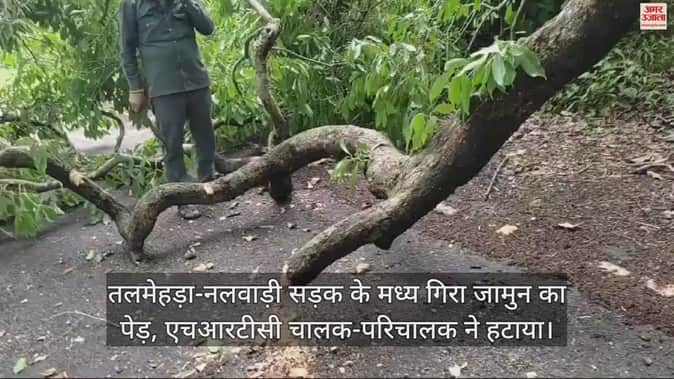 VIDEO : तलमेहड़ा-नलवाड़ी सड़क के मध्य गिरा जामुन का पेड़, एचआरटीसी चालक-परिचालक ने हटाया