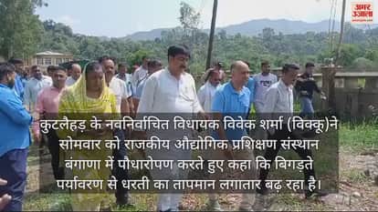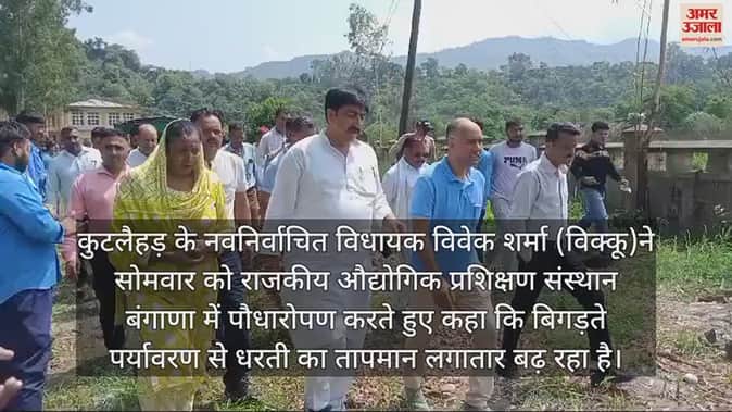 कुटलैहड़ के नवनिर्वाचित विधायक विवेक शर्मा (विक्कू)ने सोमवार को राजकीय औद्योगिक प्रशिक्षण संस्थान बंगाणा में पौधारोपण करते हुए कहा कि बिगड़ते पर्यावरण से धरती का तापमान लगातार बढ़ रहा है। जिससे मानव जीवन, जीव-जंतु व पेड़ पौधों पर बुरा असर पड़ रहा है। हम सभी को अधिक से अधिक पेड़ लगाने चाहिए ताकि पर्यावरण की सुरक्षा सुनिश्चित हो सके। विधायक ने कहा कि शुद्ध वायु और शुद्ध जल आने वाली पीढि़यों का अधिकार है। ये तभी संभव है, जब हम पर्यावरण को संरक्षण करेंगे और अधिक से अधिक पौधारोपण करेंगे। उन्होंने कहा कि प्रदूषण को कम करके शहर को हरा भरा बनाएं तथा ज्यादा से ज्यादा पौधे लगाकर उनका संरक्षण करें, ताकि हमारा शहर व जिला हरा भरा रहे। उन्होंने नागरिकों से अपील करते हुए कहा कि प्रदूषण को कम करके पर्यावरण को बचाया जा सकता है। हम सभी को पर्यावरण के संरक्षण में आगे आना चाहिए। सभी को अधिक से अधिक संख्या में पेड़ लगाने चाहिए। जितने अधिक पेड़ होंगे, पर्यावरण उतना ही स्वच्छ होगा। उन्होंने कहा कि वनों की संख्या लगातार कम हो रही है, जिससे धरती के तापमान में लगातार बढ़ोतरी हो रही है। इस मौके पर ब्लॉक कांग्रेस कमेटी अध्यक्ष राम आसरा , एसडीएम सोनू गोयल, थाना प्रभारी अनिल कुमार, कृषि विशेषज्ञ सतपाल धीमान, आईटीआई बंगाणा के प्रधानाचार्य पुनीत कुमार, उद्यान विकास अधिकारी वीरेंद्र भारद्वाज सहित अन्य अधिकारी व कांग्रेस के कार्यकर्ता उपस्थित रहे।