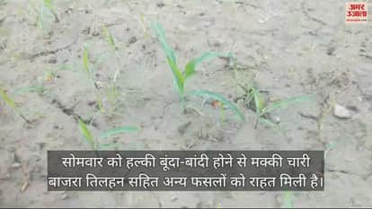 सोमवार को हल्की बूंदा-बांदी होने से मक्की चारी बाजरा तिलहन सहित अन्य फसलों को राहत मिली है। बिना बारिश मक्की की फसल सूखने की कगार पर पहुंच गई थी। बिना बारिश सूखी जमीन से दरारें आने शुरू हो गई थी।