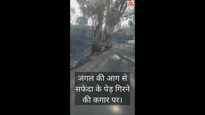 VIDEO : बंगाणा में जंगल की आग की चपेट में आने से सफेदा के कई पेड़ गिरने की कगार पर