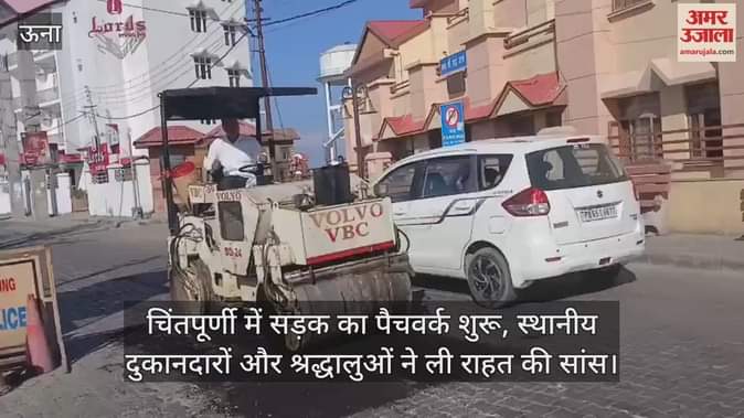 चिंतपूर्णी में सड़क का पैचवर्क शुरू, स्थानीय दुकानदारों और श्रद्धालुओं ने ली राहत की सांस
