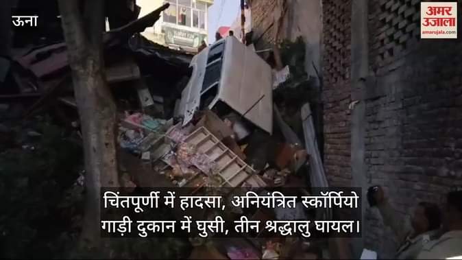 VIDEO : चिंतपूर्णी में हादसा, अनियंत्रित स्कॉर्पियो गाड़ी दुकान में घुसी, तीन श्रद्धालु घायल
