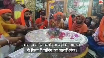 VIDEO : सदा शिव ध्यूंसर महादेव मंदिर में गंगाजल से किया शिवलिंग का जलाभिषेक