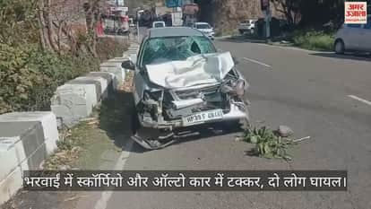 VIDEO : भरवाईं में स्कॉर्पियो और ऑल्टो कार में टक्कर, दो लोग घायल