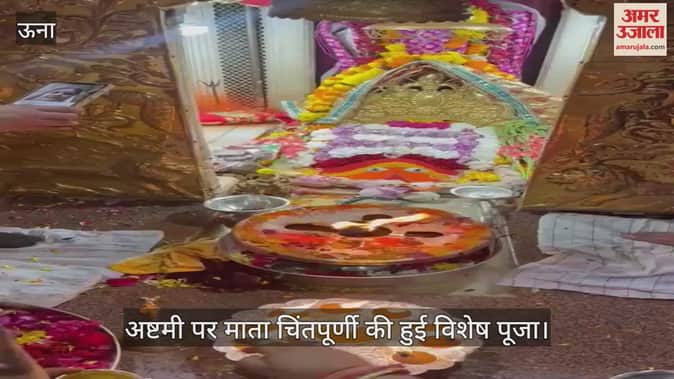 शारदीय नवरात्र के चलते मंगलवार को माता श्री चिंतपूर्णी मंदिर में विशेष पूजा-अर्चना की गई। अष्टमी के उपलक्ष्य पर शुक्रवार सुबह 9:00 बजे से पूजा-अर्चना शुरू हुई। इस दौरान माता को पावन चौकी का स्नान, श्रृंगार, भोग, हवन, तथा नारियल की बलि दी गई। माता को 56 तरह के व्यंजन का भोग भी लगाया गया। पुजारी अमित कालिया ने कहा कि आज माता रानी का श्रंगार किया। पूजा-अर्चना के बाद मंदिर के कपाट खोले गए, जिसके बाद बड़ी संख्या में श्रद्धालुओं ने मां के दरबार में माथा टेका। वहीं मंदिर आने वाले भक्तों से मां के जयकारों से मंदिर व आसपास का वातावरण गुंजायमान हो उठा। इस पूजा में राम कुमार शर्मा, पुजारी बारीदार सभा के प्रधान रविंदर छिंदा, पुजारी अजय कालिया, रोहन कालिया, हितेश कालिया, संदीप कालिया, अनमोल कालिया, गगन कालिया और समस्त पुजारी परिवार उपस्थित रहा। मंदिर अधिकारी अजय मंडयाल ने इस मौके पर बताया कि शारदीय नवरात्र के दौरान अन्य राज्यों से श्रद्धालु भी माता रानी के दरबार पहुंचे।