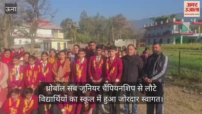 थ्रोबॉल सब जूनियर चैंपियनशिप से लाैटे विद्यार्थियों का स्कूल में हुआ जोरदार स्वागत