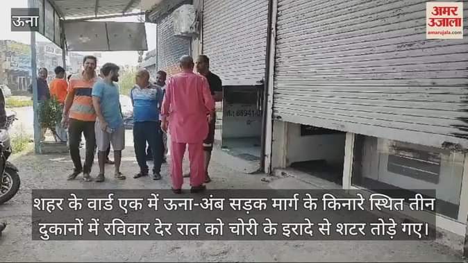 शहर के वार्ड एक में ऊना-अंब सड़क मार्ग के किनारे स्थित तीन दुकानों में रविवार देर रात को चोरी के इरादे से शटर तोड़े गए। आरोपियों ने नकदी चोरी करने के इरादे से शटर तोड़े। राहत की बात रही कि दुकानों में अधिक नकदी नहीं थी। पुलिस ने मामले की जांच शुरु कर दी है। जानकारी के अनुसार ऊना शहर के श्मशान घाट के सामने ऑटोमोबाइल, ई-रिक्शा, स्कूटी मैकेनिक की एक साथ तीन दुकानें हैं। रविवार देर रात सभी दुकानें बंद थी। इसी दौरान अज्ञात आरोपियों ने किसी लोहे नुमा वस्तु की मदद से ताले तोड़े और बारी-बारी तीनों दुकानों के शटर खोलकर गल्ले तोड़े। इसके बाद गल्ले में पड़ी नकदी पर हाथ साफ किया। हालांकि आरोपियों के दुकानों में पड़े किसी अन्य सामान को हाथ नहीं लगाया। जबकि एक दुकान में स्कूटी भी खड़ी थी। वहीं दुकानदारों ने कहा कि गल्ले में अधिक नकदी नहीं थी। पुलिस अधीक्षक राकेश सिंह ने कहा कि मामले में दुकानदारों में शिकायत दर्ज नहीं करवाई है। फिर भी पुलिस अपने स्तर पर मामले की जांच कर रही है। पुलिस की टीमें 24 घंटे गश्त पर तैनात हैं।