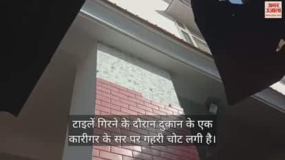 VIDEO : चिंतपूर्णी पुराने बस स्टैंड पर बनी नई बिल्डिंग की टाइलें गिरी, बाल-बाल बचे दुकानदार, एक को आई चोटें