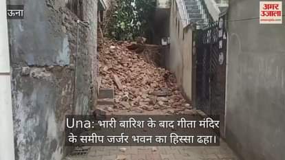 Una: भारी बारिश के बाद गीता मंदिर के समीप जर्जर भवन का हिस्सा ढहा