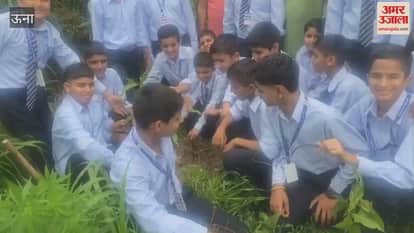 Una: 'एक पेड़ मां के नाम' अभियान के तहत आर्य पब्लिक स्कूल में लगाए फलदार पौधे