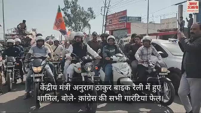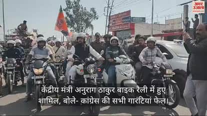 VIDEO : केंद्रीय मंत्री अनुराग ठाकुर बाइक रैली में हुए शामिल, बोले- कांग्रेस की सभी गारंटियां फेल