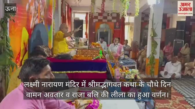 Una: लक्ष्मी नारायण मंदिर में श्रीमद्भागवत कथा के चौथे दिन वामन अवतार व राजा बलि की लीला का हुआ वर्णन