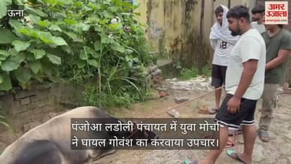 Una: पंजोआ लडोली पंचायत में युवा मोर्चा ने घायल गोवंश का करवाया उपचार