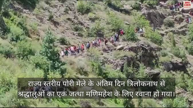 राज्य स्तरीय पोरी मेले के अंतिम दिन त्रिलोकनाथ से श्रद्धालुओं का एक जत्था मणिमहेश के लिए रवाना हो गया। जिसे पूरा वातावरण भक्तिमय हो गया और शिव की जयकारों से पूरा माहौल गूंज उठा। छड़ी यात्रा के रवाना होने से पहले मणिमहेश के सभी श्रद्धालु एक स्थान पर एकत्रित हुए और जयकारे लगने लगे को देवी-देवताओं के चेलों को खेल आई। रविवार सुबह यह सभी श्रद्धालू भगवान त्रिलोकीनाथ से आशीर्वाद लेकर अपनी मन की मुरादों को लेकर 150 के करीब श्रद्धालुओं का जत्था मणिमहेश की ओर रवाना हुआ। इसमें 40 से अधिक महिलाएं भी शामिल है। यह जत्था 16,800 फुट ऊंचे कुगती जोतकर होकर कदमताल कर पांच दिन बाद पवित्र झील मणिमहेश पहुंचेगी। इस दौरान सभी श्रद्धालु करीब 90 किमी के पथयात्रा में उबड़ खाबड़ रास्तों से होकर गुजरेंगे। जिनकी कुछ मुरादें पूरी हुई है तो कुछ श्रद्धालु मन्नतों को भी मन में संजोकर निकले हैं। जत्थे का पहला रात्रि पड़ाव थिरोट के समीप होगा। 19 अगस्त को रापे गांव के कुछ दूरी पर तो 20 अगस्त को को इनका तीसरा रात्रि पड़ाव खोलड़ु पधर से एक किमी आगे होगा। जबकि 21 अगस्त को केलिंग मंदिर और 22 अगस्त को अलियास और 23 को छठे दिन यह जत्था पवित्र झील मणिमहेश पहुंचेगा।