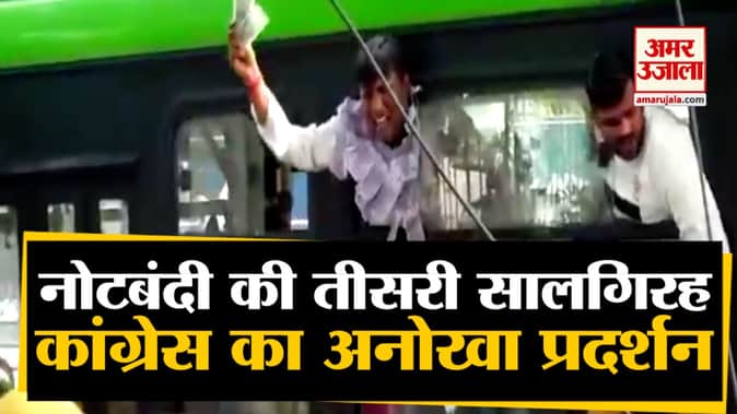 नोटबंदी के 3 साल : नोटबंदी के 3 साल पर कांग्रेस के कार्यकर्ताओं ने RBI के बाहर उड़ाए नोट