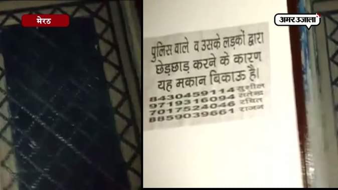जिन पुलिसवालों पर लोग अपनी सुरक्षा का भरोसा जताते हैं, वही पुलिसवाले अगर किसी के लिए खौफ बन जाएं तो वो कहां जाएगा, क्या करेगा कोई। कुछ ऐसा ही हुआ मेरठ के एक परिवार के साथ, जिसने पुलिसवाले और उसके लड़कों से परेशान होकर अपने दरवाजे पर लिख दिया छेड़छाड़ की वजह से ये मकान बिकाऊ है।