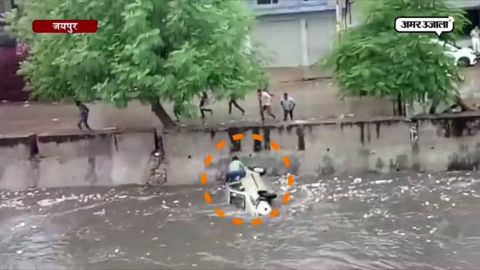 जयपुर में मूसलाधार बारिश एक युवक के लिए काल बनकर आई। यहां एक युवक नाले में गाड़ी समेत गिर गया। युवक निकलने की कोशिश करता रहा लेकिन पानी के तेज बहाव के आगे उसकी एक ना चली। तेज बहाव में बहने वाले इस युवक का नाम आयूष बताया जा रहा है जो कार समेत इस नाले में गिर गया।