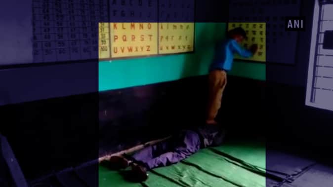 A teacher of a government school caught on camera getting massage from students in madhya pradesh