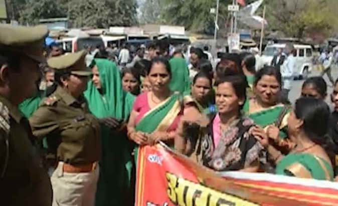 आगंनबाड़ी सेविकाओं ने सरकार के खिलाफ जताया विरोध