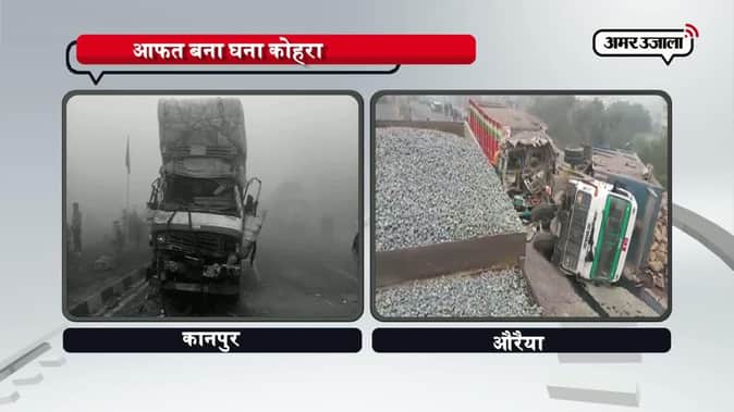 बुधवार सुबह घना कोहरा आफत बनकर लोगों के लिए आया। जहां कानपुर में कोहरे की वजह से दर्जनों गाड़ियों एक के पीछे एक टकराती चली गईं। जीरो विजिविलिटी की वजह से गुजैनी से लेकर रामादेवी सड़क तक जगह-जगह गाड़ियों में भीषण टक्कर हुईं। कई जगह तो वाहनों की भिड़ंत इतनी जबरदस्त थी कि गाड़ियों के परखच्चे तक उड़ गए। एक ही सड़क रूट पर हुए सड़क हादसों की वजह से हाईवे पर घंटों जाम लगा रहा। वहीं औरैया में भी कुछ ऐसा ही देखने को मिला, घने कोहरे की वजह से करीब आधा दर्जन सड़क हादसों में नौ लोग बुरी तरह घायल हो गए।