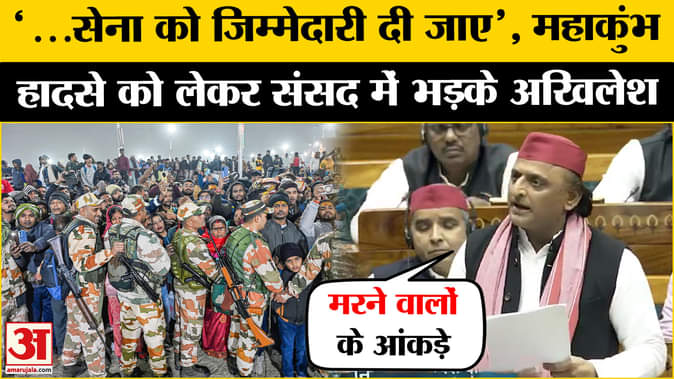 Akhilesh Yadav on Mahakumbh Stampede: लोकसभा में सरकार पर निशाना साधते हुए अखिलेश यादव ने कहा, "...सरकार लगातार बजट के आंकड़े दे रही है। आंकड़ें देने से पहले लेकिन महाकुंभ में मरने वालों के आंकड़े भी दे... मैं मांग करता हूं कि महाकुंभ की व्यवस्थाओं के बारे में स्पष्टीकरण देने के लिए सर्वदलीय बैठक बुलाई जाए। महाकुंभ आपदा प्रबंधन और खोया-पाया केंद्र की जिम्मेदारी सेना को दी जाए।"