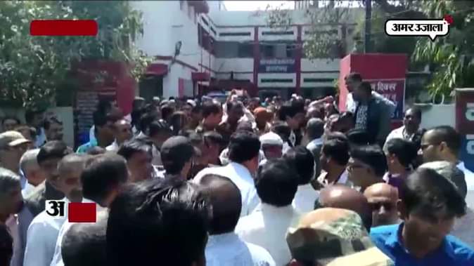 इलाहाबाद विश्वविद्याल में बुधवार को कर्मचारी संघ के अध्यक्ष ने पूर्व छात्र नेता पर मारपीट करने का आरोप लगाया। कर्मचारी संघ के कार्यकर्ता कर्नलगंज थाना पहुंचे और वहां तहरीर देने के बाद छात्र नेता को गिरफ्तार करने की मांग को लेकर उग्र प्रदर्शन किया।