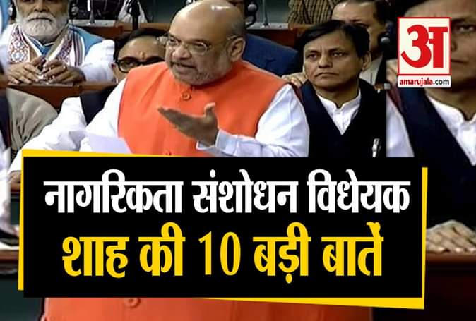 लोकसभा में विपक्षी सदस्यों के भारी विरोध के बीच गृह मंत्री अमित शाह ने सोमवार को नागरिकता संशोधन विधेयक पास हो गया। आपको दिखाते हैं इस विधेयक पर गृह मंत्री अमित शाह ने कौन सी 10 बड़ी बातें सदन में रखीं।