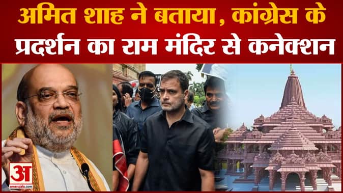 amit shah on congress protest he said there is a connection with ram mandir shilanyas