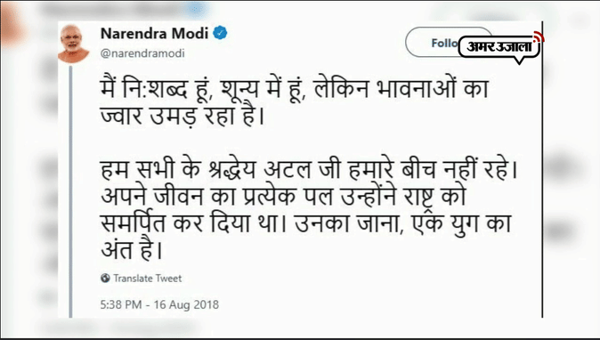 ट्विटर पर राजनेताओं ने अटल जी को दी श्रद्धांजलि