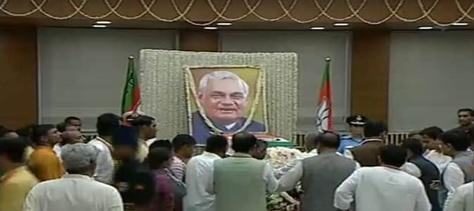 VIDEO: बीजेपी मुख्यालय में अटल बिहारी वाजपेयी के आखिरी दर्शन