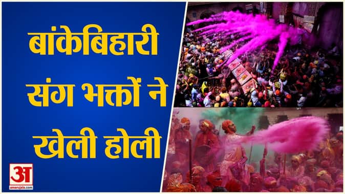 कान्हा संग भक्तों ने खेली होली, कहीं और नहीं दिखेगी बांकेबिहारी मंदिर जैसी धूम