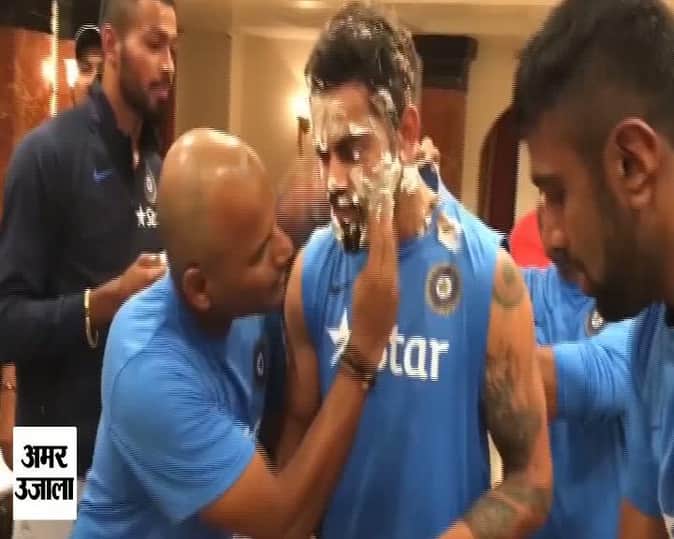 5 नवंबर को विराट कोहली का बर्थ-डे था। टीम इंडिया ने केक काटकर और विराट को केक में डुबो कर विराट सेलिब्रेशन किया। बीसीसीआई ने विराट के बर्थ-डे सेलिब्रेशन का वीडियो ट्विटर पर शेयर किया।