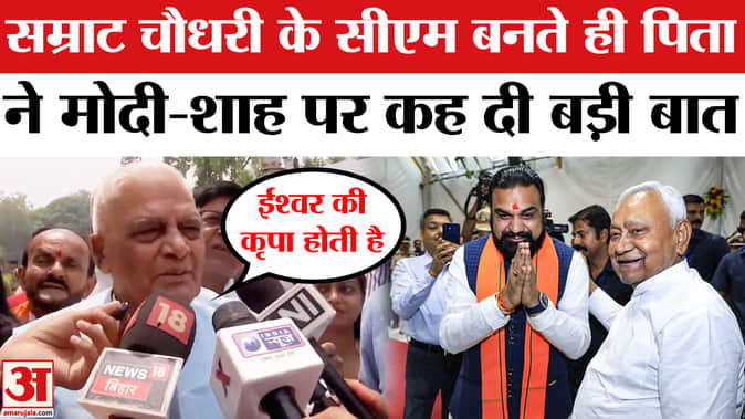 Bihar CM Samrat Choudhary: नीतीश सरकार में दो बार डिप्टी सीएम रह चुके सम्राट चौधरी ने बुधवार को पटना में मुख्यमंत्री पद की शपथ ली। शकुनी चौधरी के पुत्र सम्राट चौधरी को बिहार का 24वां मुख्यमंत्री चुना गया है। बेटे के सीएम बनते ही पिता शकुनी चौधरी का भी बयान सामने आया है। उन्होंने पीएम मोदी, अमित शाह और नीतीश कुमार के लिए बड़ी बात कही है।