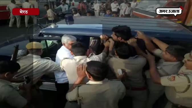 यूपी के मेरठ में शनिवार शाम पुलिस और बीजेपी नेता संजय त्यागी की झड़प कैमरे में कैद हो गई। जानकारी के मुताबिक जब नेता जी के बेटे को पुलिस ने परतापुर थाने के सामने चेकिंग के लिए रोका, तो आरोप है कि साहबजादे पुलिसवालों पर ही सत्ता का रौब झाड़ने लगे और देख लेने तक की धमकी दी। क्या है पूरा मामला देखिए इस रिपोर्ट में