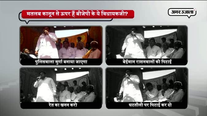उत्तर प्रदेश के संभल में बीजेपी विधायक अजीत कुमार राजू की विवादित बयानबाजी का वीडियो पार्टी के गले की हड्डी बनता जा रहा है। राजू ने रजपुरा क्षेत्र में एक कार्यक्रम के दौरान पुलिसवालों से लेकर राशनवालों तक की पिटाई का फरमान सुना दिया, साथ ही धमकी भी दे दी कि गलत काम करने वालों की पिटाई पर किसी के खिलाफ कोई कार्रवाई भी नहीं होगी। विधायक जी की बयानबाजी का ये वीडियो सोशल मीडिया पर वायरल हो रहा है।