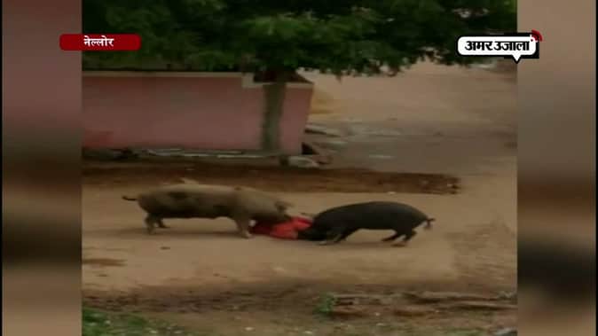 आपने जंगली सुअरों के इंसान पर हमले की खबरें सुनी होंगी। लेकिन आपको आज हम दिखाते हैं रिहायाशी इलाके में सुअरों के एक महिला पर जानलेवा हमले की तस्वीर, जो इन दिनों सोशल मीडिया पर खूब वायरल हो रही है। घटना आंध्र प्रदेश के नेल्लोर जिले की है।