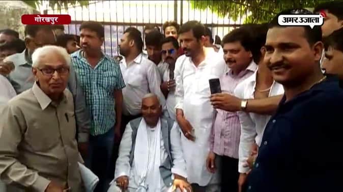 बाहुबली हरिशंकर तिवारी के ठिकाने पर छापे के विरोध में बीएसपी कार्यकर्ताओं का धरना