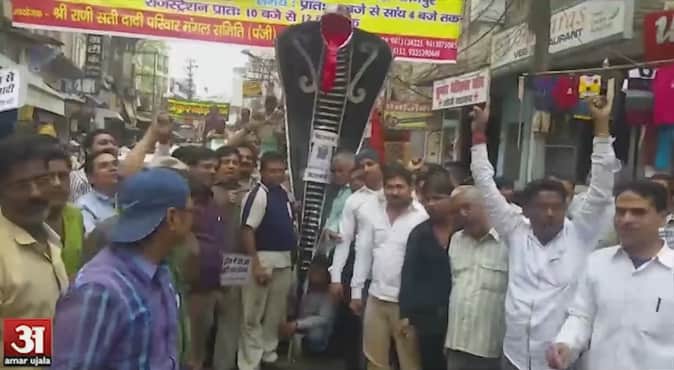 कानपुर में सर्राफा कारोबारियों ने जेटली के खिलाफ किया विरोध
