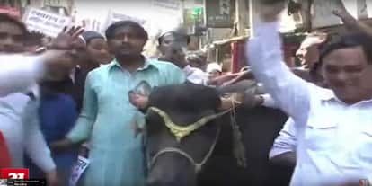 सर्राफा व्यापारियों ने भैस को जेवर पहना कर निकाला जुलुस