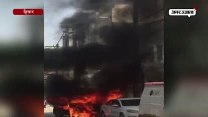 हिसार के मटका चौक-जाट कॉलेज की सड़क पर एक कार में आग लग जाने से अफरा-तफरी मच गई। प्रत्यक्षदर्शियों के अनुसार आग लगने के कुछ मिनटों बाद ही पूरी कार आग के आगोश में आ गई। कार में लगी आग इतनी जबरदस्त थी कि जिसके कारण पास की दो दुकानें भी आग की चपेट में आ गई।