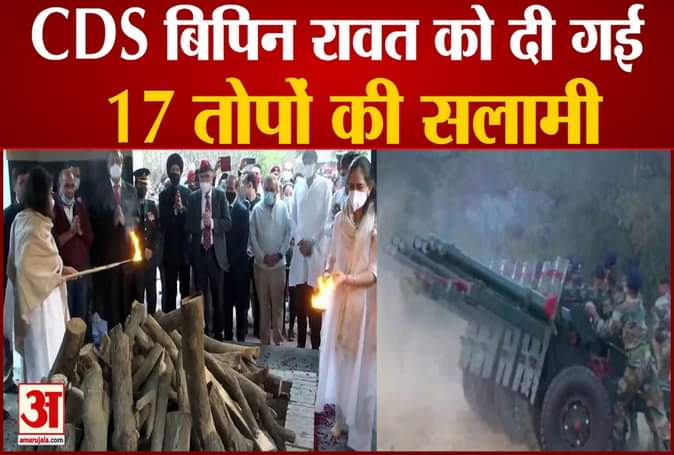 सीडीएस जनरल बिपिन रावत का पूरे सैन्य सम्मान के साथ अंतिम संस्कार किया गया। उन्हें 17 तोपों की सलामी दी गई। जनरल बिपिन रावत और उनकी पत्नी मधुलिका रावत को उनकी बेटियों कृतिका और तारिणी ने मुखाग्नि दी।