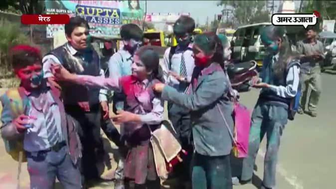 मेरठ के स्कूलों में होली की छुट्टी होते ही बच्चों ने जमकर होली खेली। दीवान पब्लिक इंटरनेशनल के बच्चों ने लास्ट पीरियड के बाद छुट्टी की घंटी बजते ही स्कूल कम्पाउंड में जमकर होली खेली और खूब अबीर-गुलाल और रंग उड़ाए।