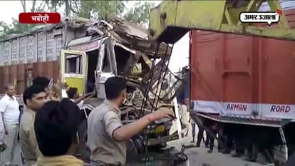 भदोही के जीटी रोड पर लालानगर के पास शनिवार सुबह खड़े एक ट्रक में दूसरा ट्रक पीछे से भिड़ गया। हादसे में ट्रक ड्राइवर समेत दो लोग गंभीर रूप से घायल हो गए। हादसा इतना भयानक था की पुलिस को ट्रक की बॉडी काटकर घायलों को निकालना पड़ा। घायलों को नजदीकी अस्पताल में भर्ती कराया गया।