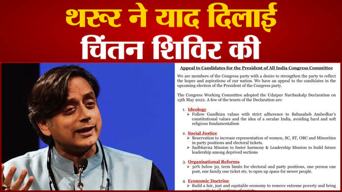 कांग्रेस अध्यक्ष का चुनाव लड़ने का संकेत दे चुके सांसद शशि थरूर ने ट्वीट कर एक ऑनलाइन अभियान का समर्थन किया है. इस अभियान में मांग की गई है कि भावी कांग्रेस अध्यक्ष उदयपुर चिंतन शिविर के संकल्पों को कुर्सी पर बैठने के बाद पहले 100 दिन में लागू करे.