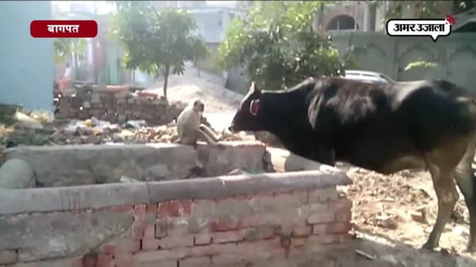 फिल्म शोले में जय और वीरू की दोस्ती तो आपने जरूर देखी होगी। लेकिन शायद गाय और लंगूर की ऐसी दोस्ती नहीं देखी होगी। लंगूर की लाख शरारतों के बावजूद गाय को गुस्सा नहीं आ रहा है। ऐसा एक दिन नहीं बल्कि हर दिन होता है। मामला बागपत के पुरानी तहसील की है।