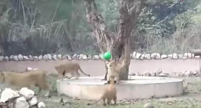 जू के नन्हें शेर भी गेंदों पर हाथ आजमा रहे हैं, देखें वीडियो