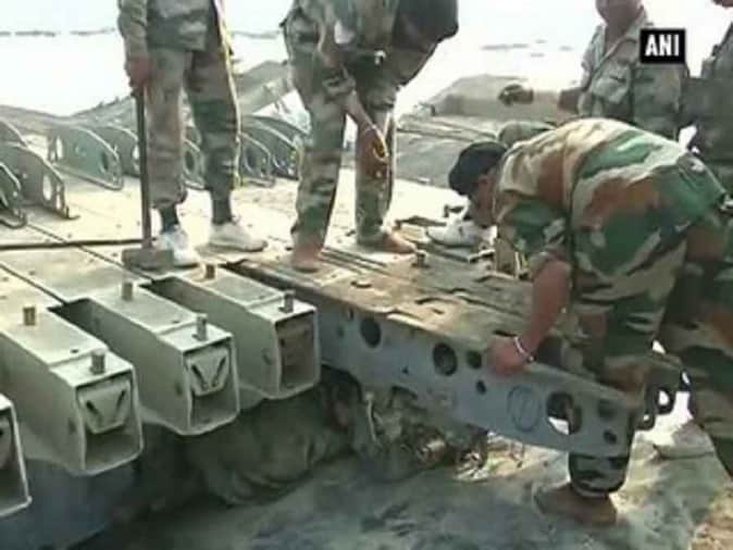 श्री श्री रविशंकर के लिए पुल बनाने में जुटे सेना के जवान