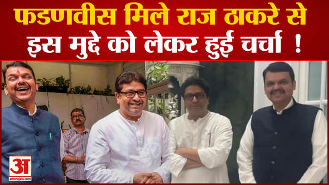महाराष्ट्र के उपमुख्यमंत्री देवेंद्र फडणवीस ने सोमवार देर शाम महाराष्ट्र नवनिर्माण सेना प्रमुख राज ठाकरे से उनके आवास पर मुलाकात की. फडणवीस राज ठाकरे से मिलने दादर स्थित उनके आवास शिवतीर्थ बंगले पर पहुंचे.