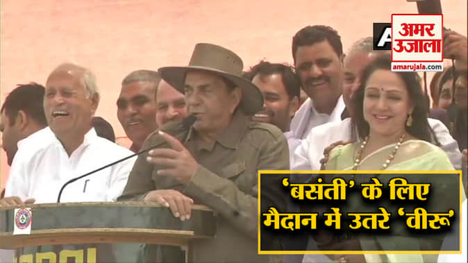 उत्तर प्रदेश की मथुरा लोकसभा सीट से बीजेपी प्रत्याशी हेमा मालिनी के लिए उनके पति और बॉलीवुड के एक्शन हीरो धर्मेंद्र रविवार को प्रचार करने उतरे।