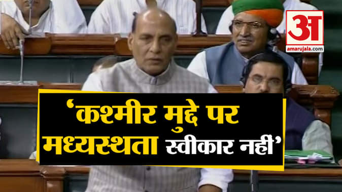 कश्मीर पर मध्यस्थता बवाल पर सदन में जमकर संग्राम हुआ। इस दौरान रक्षा मंत्री राजनाथ सिंह ने कहा कि जून में मोदी-ट्रंप की मुलाकात हुई थी, लेकिन कश्मीर मुद्दे पर ट्रंप से कोई बातचीत नहीं हुई।